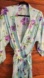 The baby blue color with purple floral roses is such a beautiful pastel palette. It is a lightweight satin-like material. There is one pocket and a wrap tie inside with waist cinch. The kimono-like sleeves are super cute and the whole robe is very elegant.