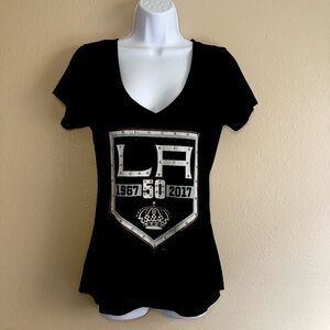 L.A Kings Majestic Threads 50th Anniversary V-Neck Embellish Women T-Shirt Sz M