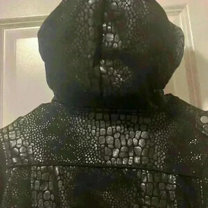 L.A. Kitty Vintage Y2K Juniors Black Snakeskin Croc Style Zip up Jacket size M non smoking home, unique edgy piece rare find