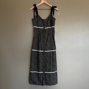 LA LIGNE Kate Floral Midi Sundress In Black Floral Size Small Tie Shoulder Chic