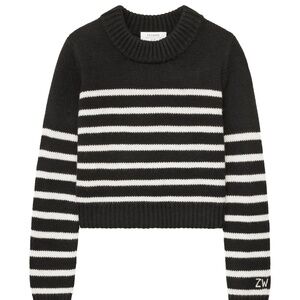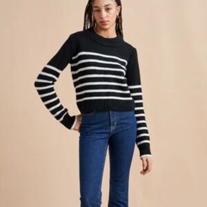 Black with white stripe, 7-ply wool-cashmere sweater, shrunken and slightly cropped