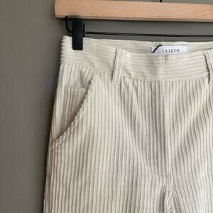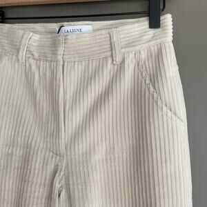 LA LIGNE Reece Trouser Ivory Size 2 Cream Corduroy Pant High Rise Wide Leg Chic