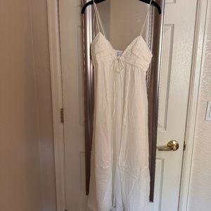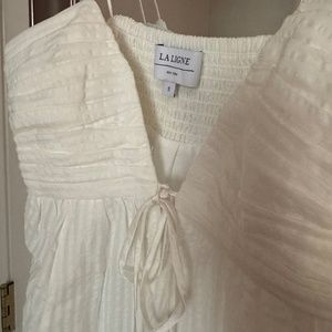 LA LIGNE Shirred Cotton and Silk-Blend Seersucker Midi Dress
