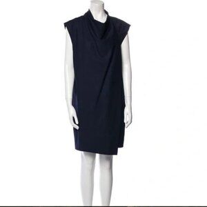 LA LIGNE Wool Cowl Neck Draped Tailored Shift Dress In Navy Blue NWT Sz S made in USA