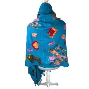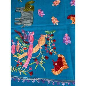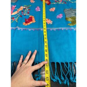 LA LO LA- Vibrant Blue embroidered Shawl with tassels- 80x30" preowned birds