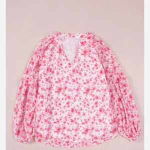 LA LUNA Pink Floral V-Neck, curve hem Blouse