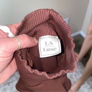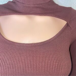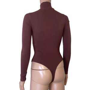 LA LUX dark brown ribbed keyhole chest body suit crotch snap long sleeve SZ SM Turtle neck onsie form fitting Body con