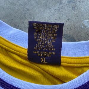 lakers jersey, vintage NBA, yellow basketball top, sports memorabilia, team apparel, game worn style, athlete tribute, icon tribute, collection piece, sports fan gift