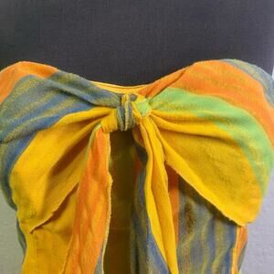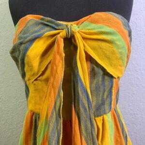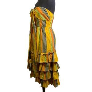 LA MAISON TALULAH Dress LG Imperial Strapless Tiered Midi Hidden Zipper Tie Bow Bust Detail