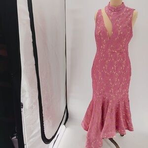 LA MAISON TALULAH FOUNDATION LACE MIDI DRESS IN TEAROSE SIZE large - $350