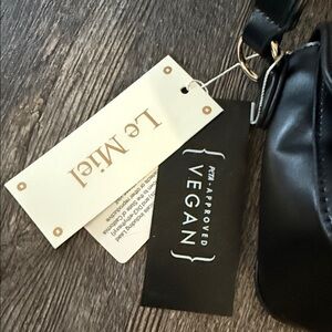 Chic black crossbody bag. Vegan leather material. Ideal for daily wear. Size is 7 inches