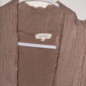 🌹LA MIEL COTTON WAFFLE RAW HEM KIMONO/TIE FRONT
