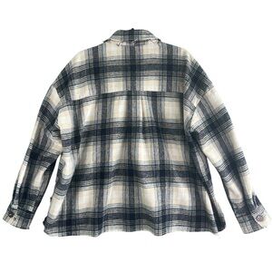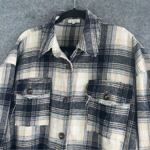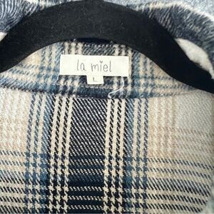 LA MIEL Plaid Flannel Button Down Shacket Shirt Jacket Raw Hem Size Large