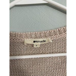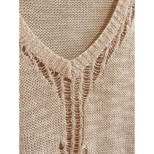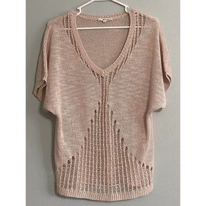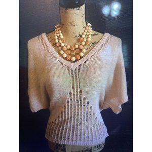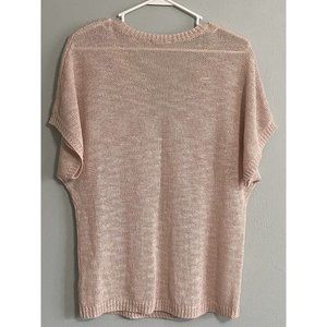 LA Made Linen Blend Small Sweater Crocheted Lightweight Blush Pink V-Neck