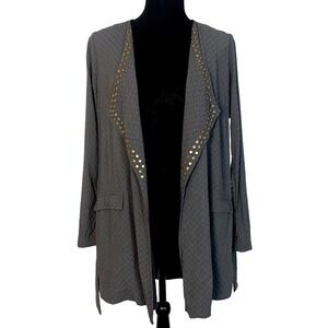 LA Made Womens XS Rayon Gray Tie Waist Open Front Cardigan Studded Kimono Jacket