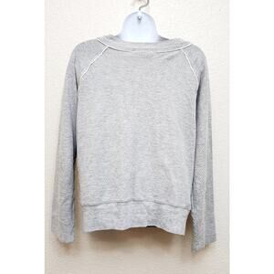 gray, marled, contrasting trim, crew neck, long Raglan sleeves, pockets, banded waist, lightweight, soft, stretch
