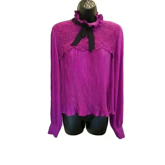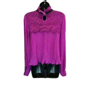 LA PATEAU Purple Pleated Lace Collar Poet’s Blouse - size 36EU or small
