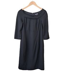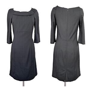 LA PERLA Black Wool Crepe Sheath Dress Size 44 / 8 Tailored Classic 3/4 Sleeve
