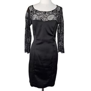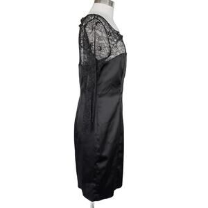 LA PERLA COLLEZIONE Black Satin & Lace Sheath Dress Size 48 / 12 Cocktail Sexy