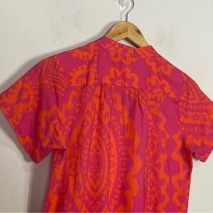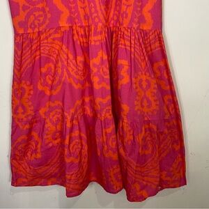 Pink Orange ruffled tiered cotton tropical print short sleeve dress
