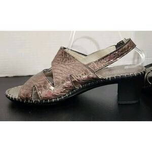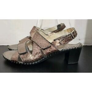 LA PLUME Bronze Metallic Ergonomic Footbed Slingback Strappy Sandal 40 US 9.5 M. Adjustable Straps. Padded for comfort. Great used condition see photos. Smoke-free home. Check out my other items. I will combine shipping