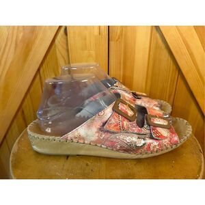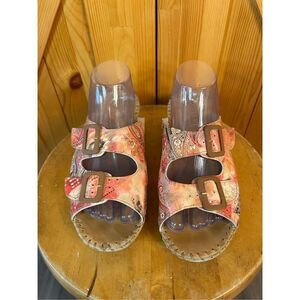LA PLUME Jen Floral Women's Size 40 9-9.5 Sandals Double Buckle Slip-On Slides