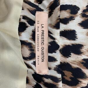 LA PRESTIC OUISTON Size S Beige Brown Silk Animal Print Open Front Coat