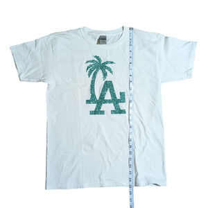 LA Palm Trees Glitter Graphic Tee Shirt Size L Pre Owned