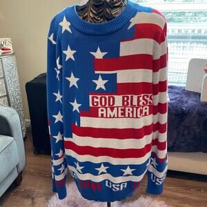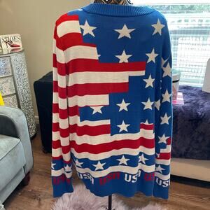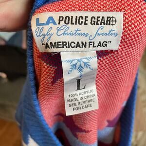 EUC is a patriotic print medium weight woven sweater by LA Police Gear. The tag lists it as an ugly Christmas sweater however this isnt ugly at all and great way to show your patriotism. Medium weight sweater, crewneck, ribbing at wrists, neckline, and waist.
