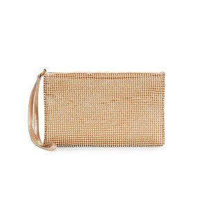 Adorned with rhinestone-studded mesh overlay, this wristlet clutch is perfect to offer a glam finish to any look.