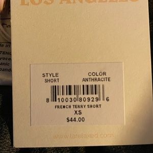 LA RELAXED Shorts. "Soft on skin and souls". Size XS. Color: Anthracite (Dark Grey). Brand New with Tags! Never Worn! 2 side pockets. Free of odors, stains, pulls, pilling, holes or any other flaws. Ethically made in Los Angeles from organic cotton and Tencel.