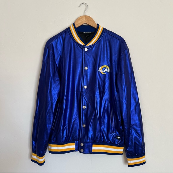 Los Angeles Rams unisex The Wild Collective Royal Metallic Bomber Jacket size large