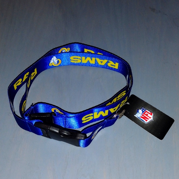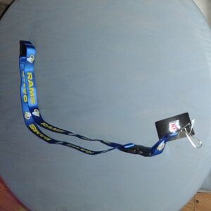 This is a lanyard for the Los Angeles Rams, an NFL football team. It's blue and features the Rams logo and wordmark. You can use it to hold keys, badges, or other small items.Brand new with tags