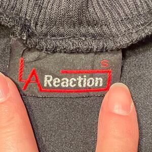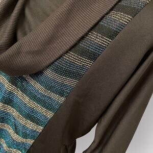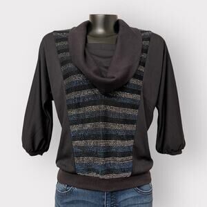 LA Reaction VINTAGE Cowl Neck 1/2 Sleeve Blouse sz S Metallic Stripe Top Black