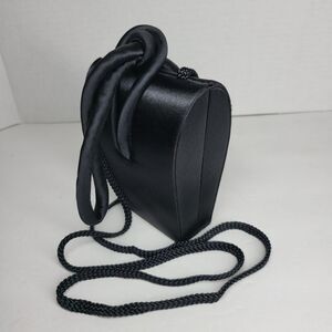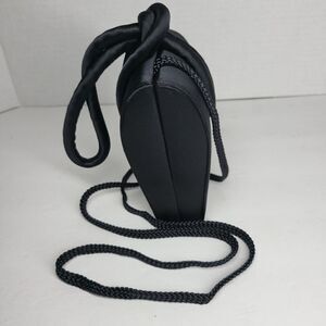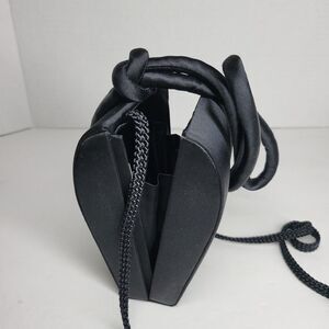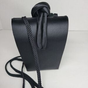 LA Regale Ltd Black Satin Evening Bag Twisted Knot & Loop Closure Braided Strap