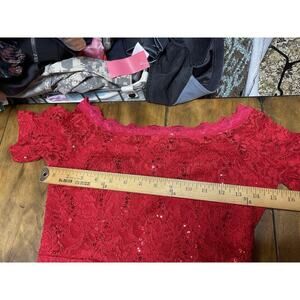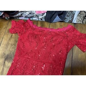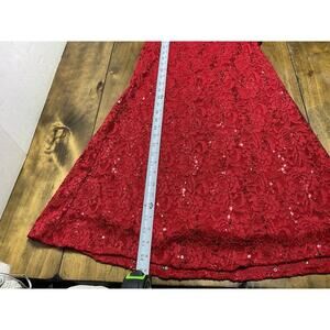 LA SCALA USA Maxi Evening Dress Women Size Medium Red Floral Embroidered Sequin