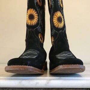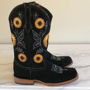 Women’s Square Toe Genuine Leather Sunflower Embroidered Western Cowgirl Boot