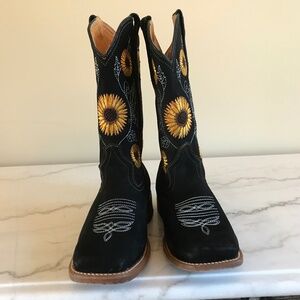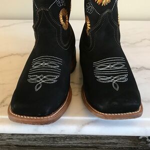 LA SIERRA BLACK LEATHER SUNFLOWER COWGIRL BOOTS