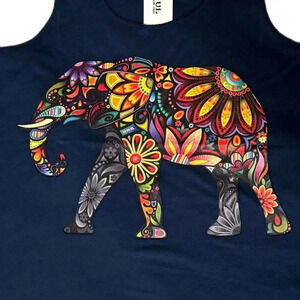 LA SOUL Navy Floral Peaceful Elephant Graphic Tank Top Lightweight Summer Shirt