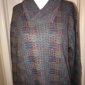 LA SQUADRA Montecarlo Gray Multicolor Print Wool Angora Blend Sweater. Made in Italy.