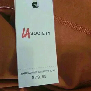 NWT!! These LA Society biker shorts are the perfect addition to any activewear collection. Designed with a slimming compression feature that targets the waist area, these Orange brown shorts in size M are ideal for women looking for both style and function. The slim fit and elastic waistband provide comfort during any physical activity, whether it's cycling or jogging. The compression area also helps improve blood flow and reduce muscle fatigue, making these shorts a must-have for any fitness enthusiast. With a trendy biker theme, they're perfect for both the gym and outdoor activities.
