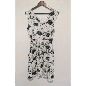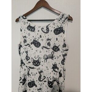 L.A Soul Cosmic Cats L Printed Fit-Flare Dress Sleeveless Pockets Black White