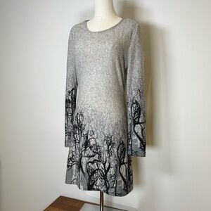 L.A. Soul Tree Branch Print Tunic Sweater Dress Women’s Size Medium. Cozy, cotton blend, long sleeve, gray and black knit. The stock photos are a similar dress but not identical, for style ideas. Very good preowned condition. Approximate measurements 35.5” top of shoulder to hem, 18” across chest, 26.5” sleeves.