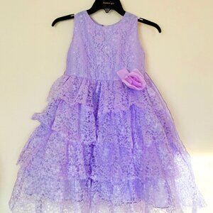 L.A. Tara for kids Purple Lace Flared Layered Dress Girls size 8 with flower