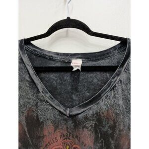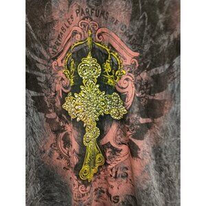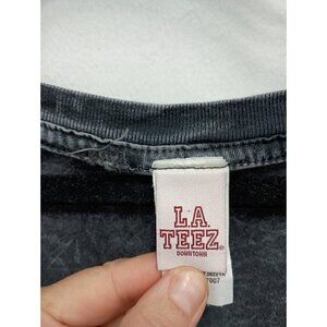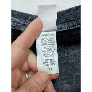 L.A Teez Womens Top 2X Black Washed Graphic Embellished Cross Sublination Grunge