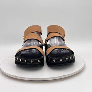 LA Tribe Women Size EU 40 US 9 Brown Leather Ankle Buckle Studed Platform Sandal