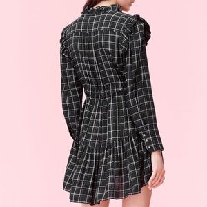 LA VIE DRAPEY PLAID RUFFLE DRESS
