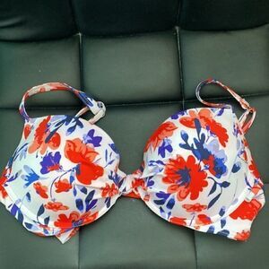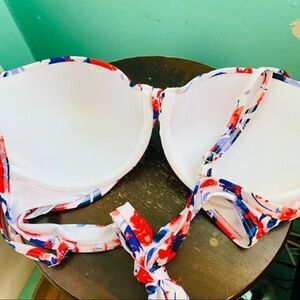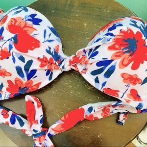 La Vie en Rose aqua | floral ruched padded bikini top. Adjustable straps. Tie back. Size D-medium. EUC