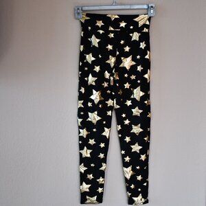LA Winner Women's Full-Length Black Pull on Gold Shiny Star Leggings Size M