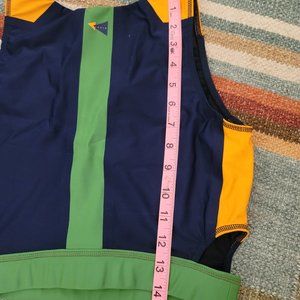 Both top and bottom size medium, run small. Bottoms worn once for approx 20 minutes (years ago). No smells or discernable stains. Top NWT. Purchased from Nancy Meyer and in original shipper still with tags safety pinned to top. Pics of inside mesh shown as well. Sold as a set. Price firm.